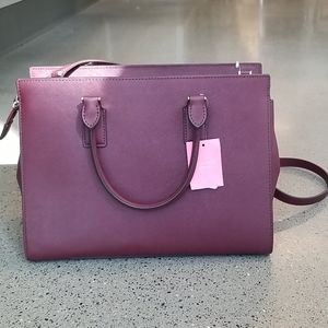The cameron is a polished and structured leather satchel in a bold hue that adds a simple statement to your everyday style. - Detachable, adjustable shoulder strap - Dual rolled top handles - Top zip closure - Exterior features leather construction and front slip pocket - Interior features wall zip and slip pockets - Approx. 8.5”H x 11.5”W x 6”D - Approx. 5” drop - Approx. 23.5”