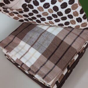 KATE SPADE Kitchen Towel Set 5 Pairs Printed Dish Towels Coffee Plaid Chevron