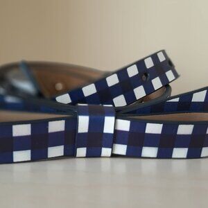 A playful yet classy accessory to turn your outfit from wow to WOW. This Kate Spade belt features a navy and white gingham print leather and gold-toned hardware.