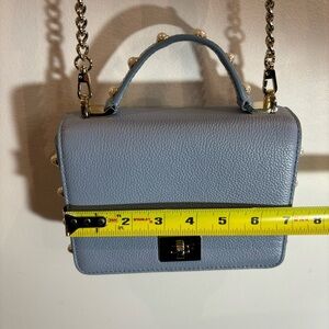 KATE SPADE MAISIE PEARL CLOUD COVER Colourway Crossbody Top Handle Bag Purse. Super cute. Beautiful leather. Measurements in pictures. Girl core. Coquette core. Pastel. Stock picture for illustration purposes only. Strap inside purse. Metal chain accents.