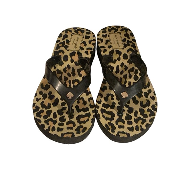 KATE SPADE New York Milli Wedge Flip Flop Thongs Leopard Sz 6