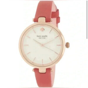 KATE SPADE Rose Gold Leather Strap Water Resistance Watch Pearl Earrings Set NWT