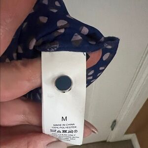Stylish blue blouse with ruffled sleeves. Features a charming print pattern.