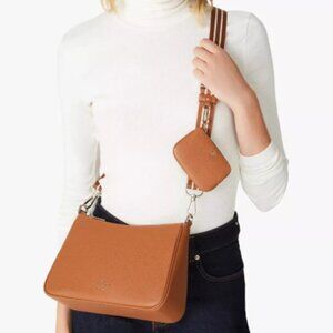 This Kate Spade Two Straps Leather Bag & Pouch is chic and functional. It holds all of your essentials--wallet, keys, phone, lipstick, make up, perfume, glasses and a lot more.