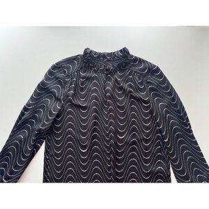 KATE SPADE Wavy Dot Black Printed Matte Satin Ruffle Trim Blouse, Size XS