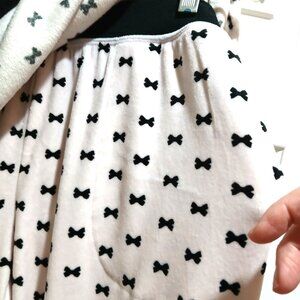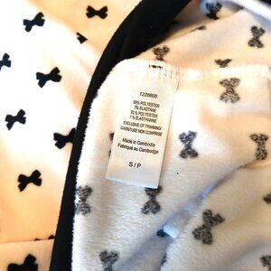 In good condition. Size small fleece fabric. No flaws. Slight high/low. PJ bottoms have pockets. Crew neck/cuffs and ankles.