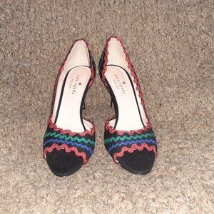 KATE SPADE-Saranne-d'Orsay Peep Toe-Black w/Red Green Blue Rick Rack-Sz 5.5-NM