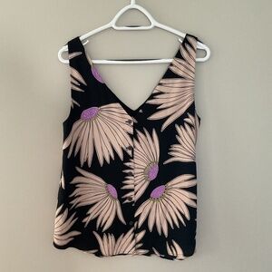 KATE Spade Falling Flower Top Sleeveless Black Cream Purple Floral Women's Med