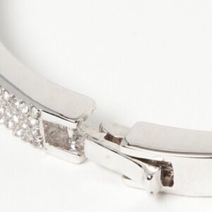 rhodium plate, faceted glass crystals, crystal pave, and inlaid enamel features locking closure details hinged handcrafted