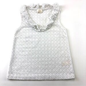 KATE Spade white all cotton eyelet sleeveless ruffle neck top Size 0
