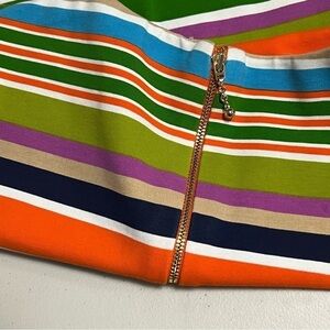 Step out in a sophisticated stripe that is distinctively kate spade new york. With its cap sleeves and exposed back zipper, the nico dress gives the shift silhouette new life for spring. Mixed stripes. Round neckline; cap sleeves. Straight skirt. Back zip. Shift silhouette. Viscose/polyamide/spandex.