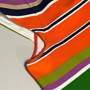 Step out in a sophisticated stripe that is distinctively kate spade new york. With its cap sleeves and exposed back zipper, the nico dress gives the shift silhouette new life for spring. Mixed stripes. Round neckline; cap sleeves. Straight skirt. Back zip. Shift silhouette. Viscose/polyamide/spandex.
