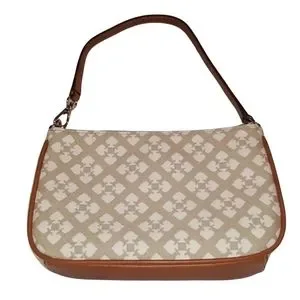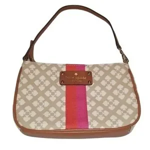 Authentic Kate Spade Neda tan and white striped purse in durable woven jacquard in the classic Spade pattern in Stucco. Style # WLR1766. NWOT.