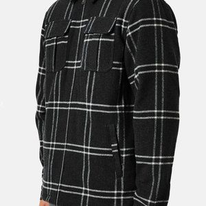 The Crosby Jacket is made of 80% polyester 20% Wool Plaid Flannel blend. The Crosby also features a Sherpa Body Liner and Quilted Poly Lined Sleeves.