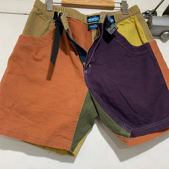 Kavu Unisex Short, Lightweight, Size M, Waist Size 30, Colorblock, 100% Cotton, Side Pockets, Back Pockets, Closure: Zipper and Button, Front Belt, in Good Condition.Casual Shorts with a Great Look and Fit.