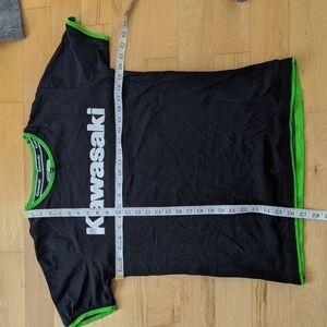 Kawasaki black t-shirt logo printed greem collar size Medium Large