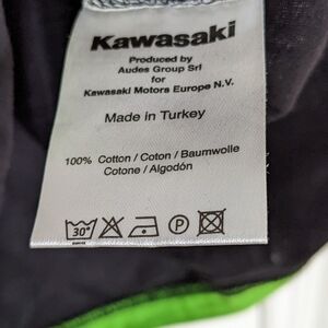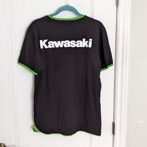 KAWASAKI black t-shirt logo printed greem collar size Medium Large M2