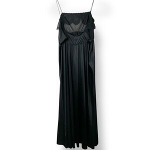 KAYSER Vintage Black Nylon Nightgown Sheer Mesh Swiss Dot Lace Trim Bodice Sz L