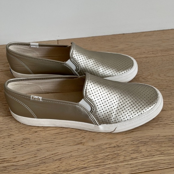 KEDS Double Decker Slip On Sneaker Perforated Faux Leather Perforated Metallic