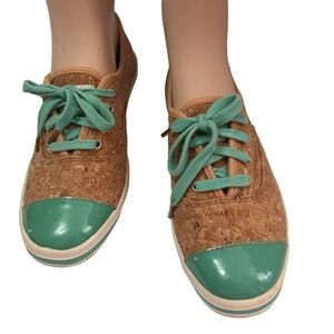 KEDS Kate Spade Cork Corkie Sneakers Shoes Lace Up Teal Green Rubber Soles