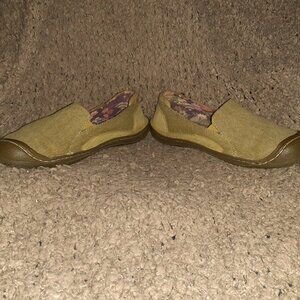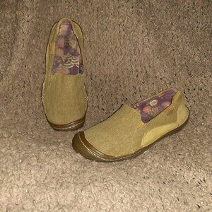 KEEN-Cush Golden Summer Canvas Slip On Loafers/Flats-Olive-Sz 6.5-Excellent