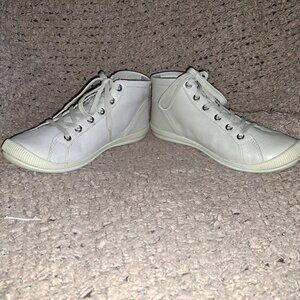 KEEN-Lorelai 1020497-Grey/Beige Leather Chukka Boots-Sz 7-Excellent In excellent pre-owned condition as shown.... Size 37.5/7 US, measures 9.75" via insole, 10.25" via sole and 3.75" wide. The KEEN-Lorelai 1020497 Grey/Beige Leather Chukka Boots in size 7 are a stylish and comfortable choice for women. Featuring a lace-up closure, mid-top shaft style, and rubber outsole, these athletic shoes are perfect for casual occasions. The leather upper material, cushioned and lightweight design, as well as adjustable and breathable features make them suitable for all seasons. The solid gray color, logo accents, and sports-themed design add a touch of flair to these versatile boots from the trusted brand KEEN.