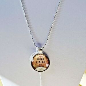 KEEP CALM AND LOVE DOGS PENDANT NECKLACE, HANDMADE, GLASS DOME ON METAL, 23 INCH