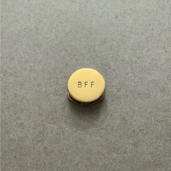 Round gold charm with 'BFF' engraving. Perfect for any occasion. Compatible with your Keep Collective bracelet.