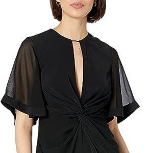 KEEPSAKE the Label Twist Asymmetrical Black Midi Dress, Size XS
