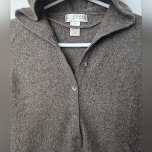 KENAR 100% Cashmere Long Sleeve Hoodie Brown Cardigan Women Size Small
