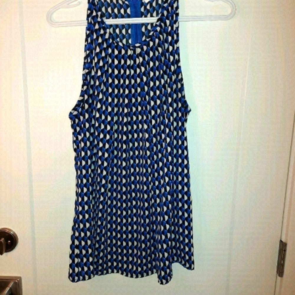 Beautiful Kenar blue, black and white dressy tank top