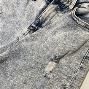Style: Pull-on, distressed, high-rise, 5-Pocket styling, belt loops, very stretchy, straight leg, hits above ankle