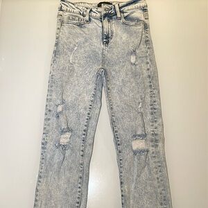 Elevate your style with these high rise straight cut jeans from Kendall & Kylie, featuring a light wash blue. Designed for a modern look, these jeans offer a flattering fit and a touch of sophistication.
