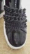 Duke Black Patent Leather Laceless Sneaker W/ Multiple Layer Black Decorative Chain Details Top and White Platform Sole.