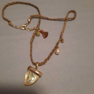 KENDRA SCOTT 14k Gold-Plated Carved Abalone Shark Tooth Cord-Wrapped Necklace
