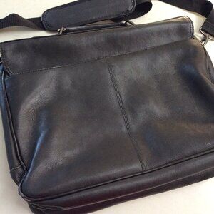 KENNETH COLE 16" Laptop Briefcase Messenger Man Bag Leather Black Shoulder Strap