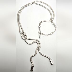 KENNETH COLE Long Lariat Style KNOT Snake Chain Necklace Silver Signed