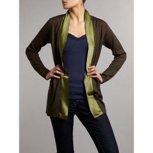 KENNETH COLE New York DARK OLIVE Shawl Collar KNIT Cardigan Top L $220