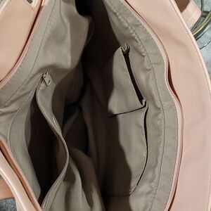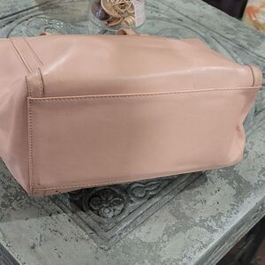 Great nude pale color purse in very good condition zip closure logo.on the front vegan leather of a good medium size!