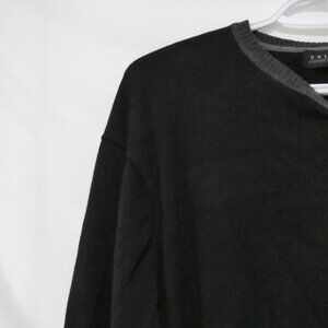 KENNETH COLE - Unlisted Production | 2XT | Black Henley Sweater | Grey Trim
