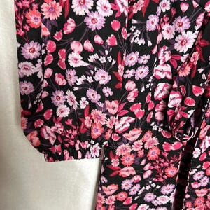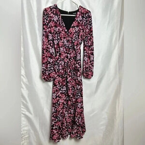 KENSIE pink chiffon,faux wrap,floral, puffy sleeve dress,sz 2, surplice,fairy