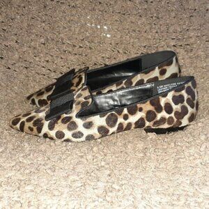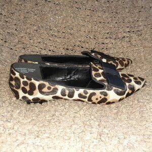 KENSIE-Leopard Pattern Calf Hair Ballet Flats-Ribbon Bow-Sz 6.5-Near Mint