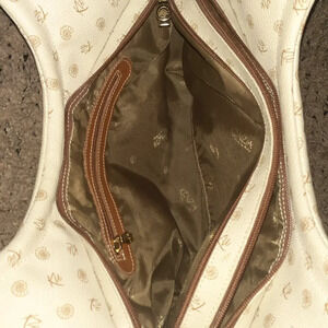 KENZIA-Looping Shoulder Bag-Beige Coated Canvas/Brown Leather-Excellent