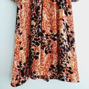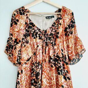 KENZIE Pretty / 100% Silk Flowy V-Neck Midi Knee Length Dress Abstract Floral M