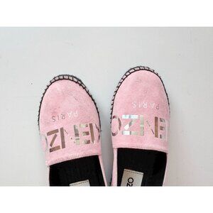 KENZO Paris Rose Clair Pink Suede Silver Logo Espadrille Flats, Size 36