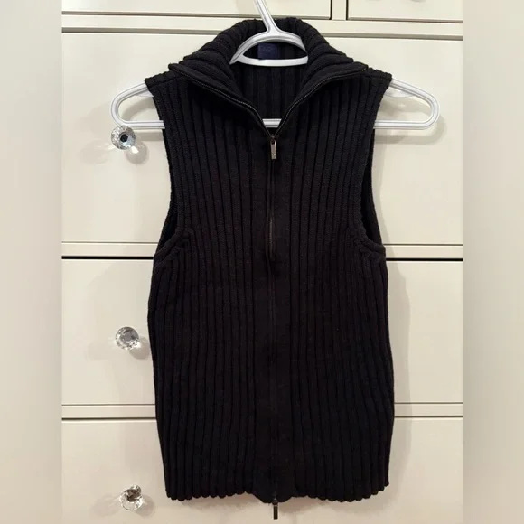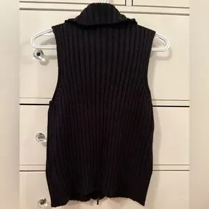 Stylish black ribbed sleeveless vest with a zip-up front. Perfect for layering.