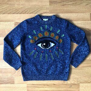 KENZO (Size XS) Blueish-Grey Evil-Eye Wool Sweater