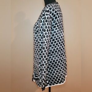 KEREN HART Cardigan, Black and White with Fringe Detail, Size Medium