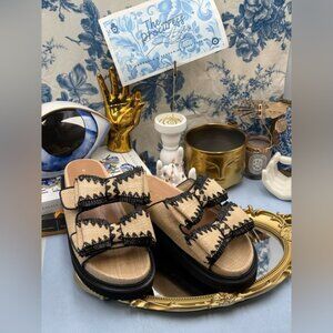 🆕 KG KURT GEIGER 🧿 NWOB Robbie Bow-Embellished Raffia Sandals, Black - Sz US 7