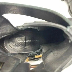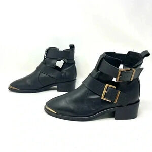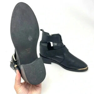 KG Kurt Geiger - Black Leather Moto Boots with Front Gold Caps